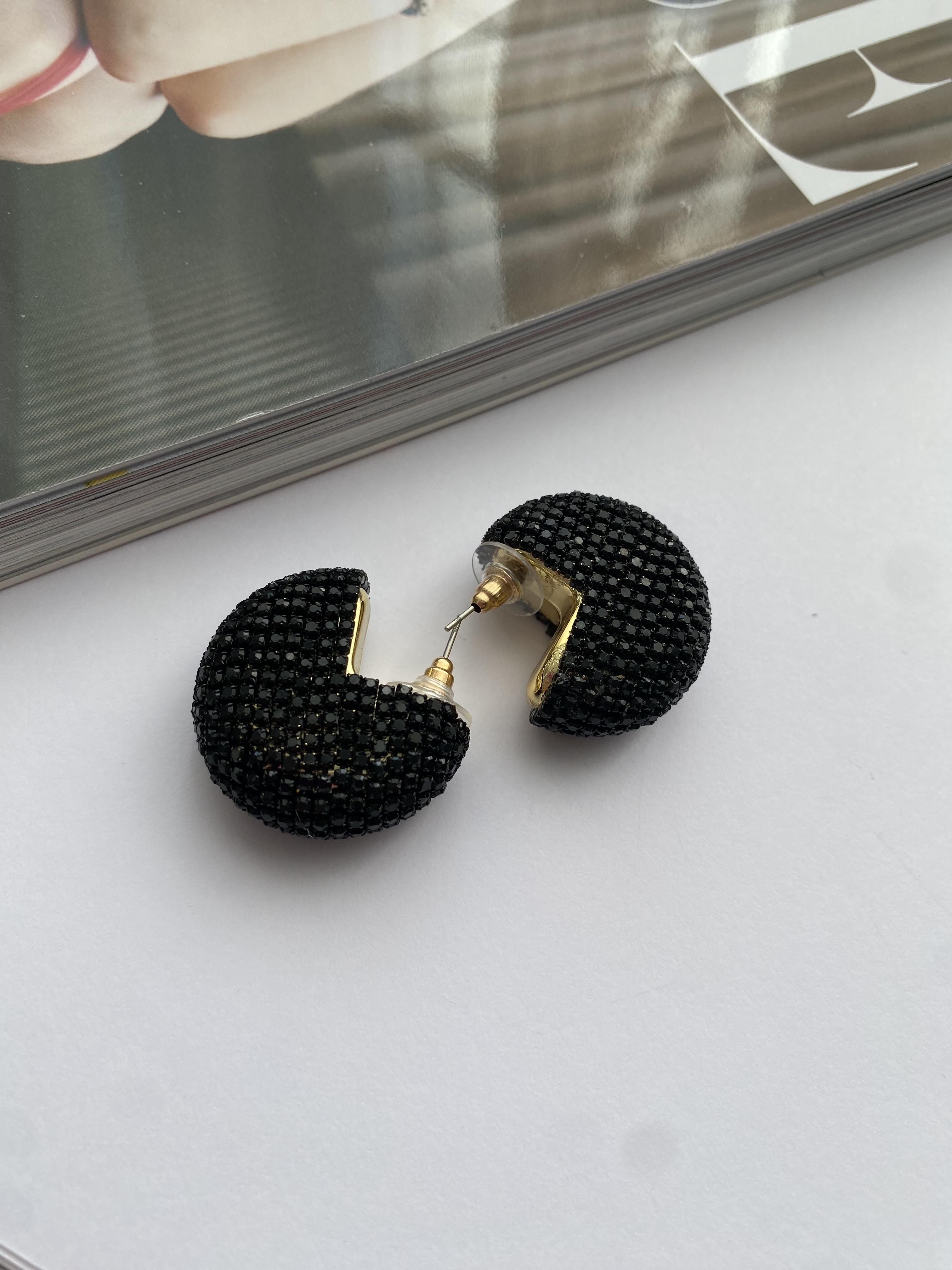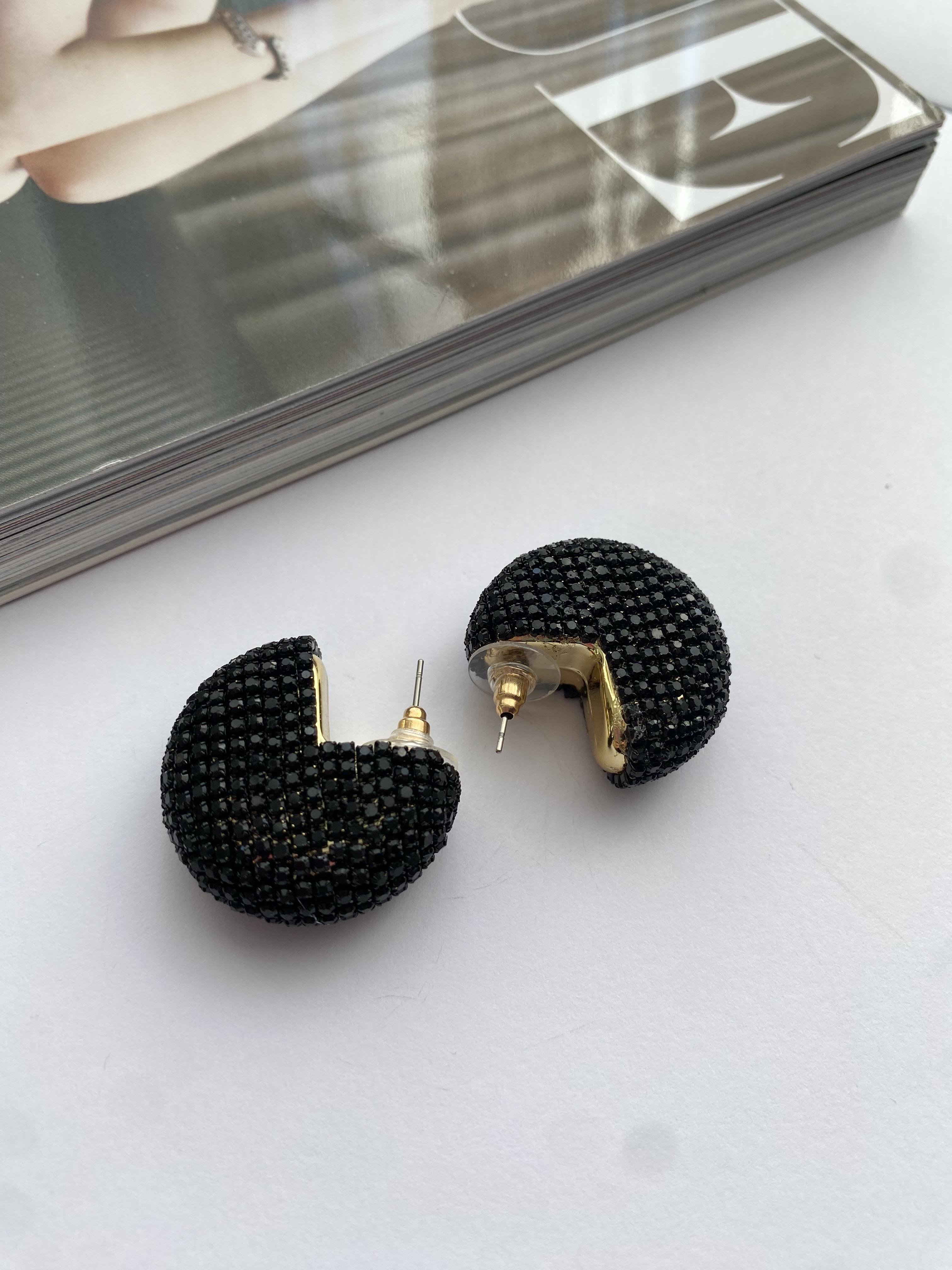 Siyah taşlı şık küpe, modern ve zarif tasarımı ile göz alıcı bir aksesuardır. Siyah rengin asaleti ile taşların parlaklığı bir araya gelerek, her kadının tarzına uyum sağlayacak bir ürün oluşturmuştur.